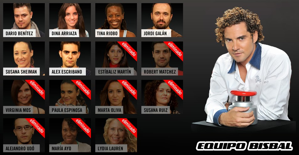 composición de los 24 elegidos para los "Directos" que arrancan este mismo miércoles, 27 de noviembre a las 22:00 h. en Telecinco. En la fase final del concurso pelearán por ser la mejor voz del país Álex, Tina, Jordi, Darío, Susana Sheiman y Dina Arriaza (David Bisbal); Amynata, David Barrull, Mandy, Janyssha, Silverio y Alba Lucía (Malú); Estela, Idoia, Brigitte, Gabrielle, Ivet y Sandra Rodrigo (Rosario); y