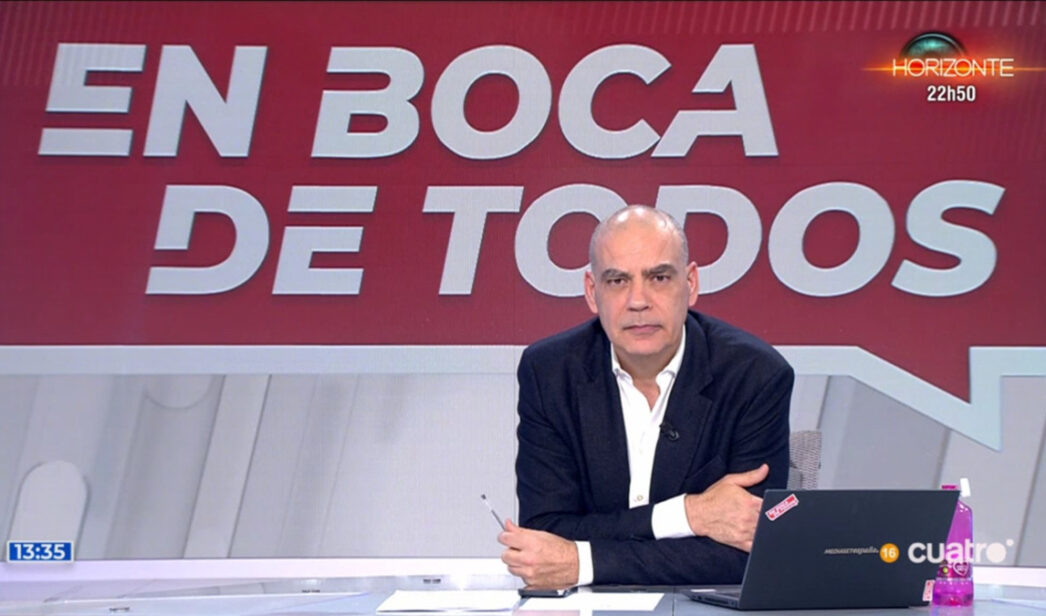 El coloquio se ha ido de madre con todos los colaboradores pisándose los unos a los otros, y el presentador ha tenido que intervenir para poner orden en el plató de 'En boca de todos': "Autocensuraros un poquito". Sin embargo, Nacho ha sido desacatado y ha acabado perdiendo la paciencia con la intervención que ha hecho Antonio Naranjo, su tertuliano más agitador, como detonante.