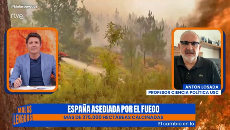 Está siendo un mes de agosto completamente terrorífico en lo que a cuestión de incendios se refiere. Y en los últimos días ha vuelto a estallar el debate de quién tiene las competencias y quién es el responsable de la gestión de los fuegos si el gobierno central o las comunidades autónomas. Un asunto que este martes derivó en una discusión entre Ernesto Ekaizer y Hugo Pereira en 'Malas Lenguas' que acabó con Jesús Cintora interviniendo. Pero además, Antón Losada dio una auténtica lección magistral sobre el tema.