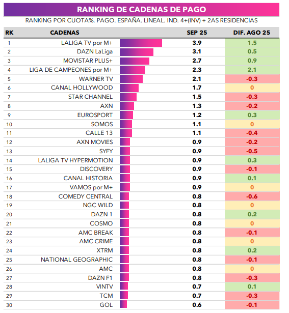 CADENAS DE PAGO: Los canales deportivos lideran