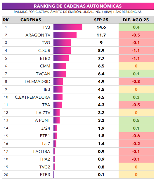 AUTONÓMICAS: TV3 es la cadena autonómica líder