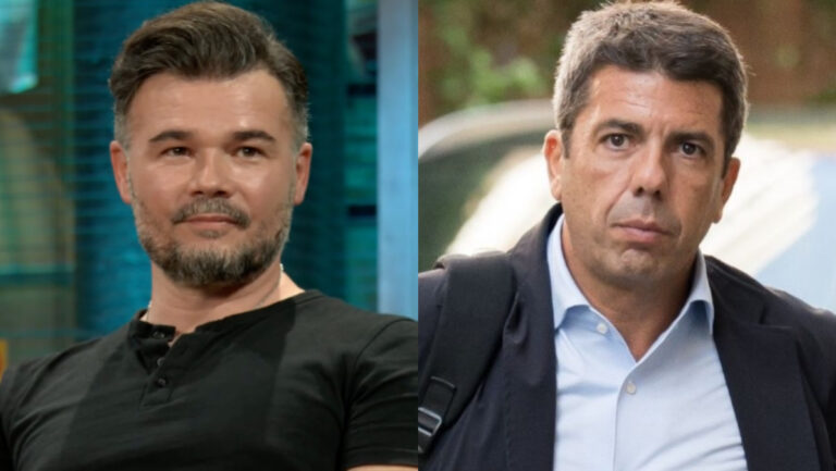 "Lo único que te pido es que nunca jamás invites a Mazón. Mazón a prisión", ha sentenciado con gesto serio Gabriel Rufián a la vez que los espectadores en el público secundaban sus palabras con una lluvia de aplausos atronadora. De igual forma, 'La Revuelta' lanzaba otro dardo al presidente de la Comunidad Valenciana a través de sus rótulos: "Le mandaremos un mensaje para venir cinco horas tarde", se ha podido leer durante el momento en pantalla.