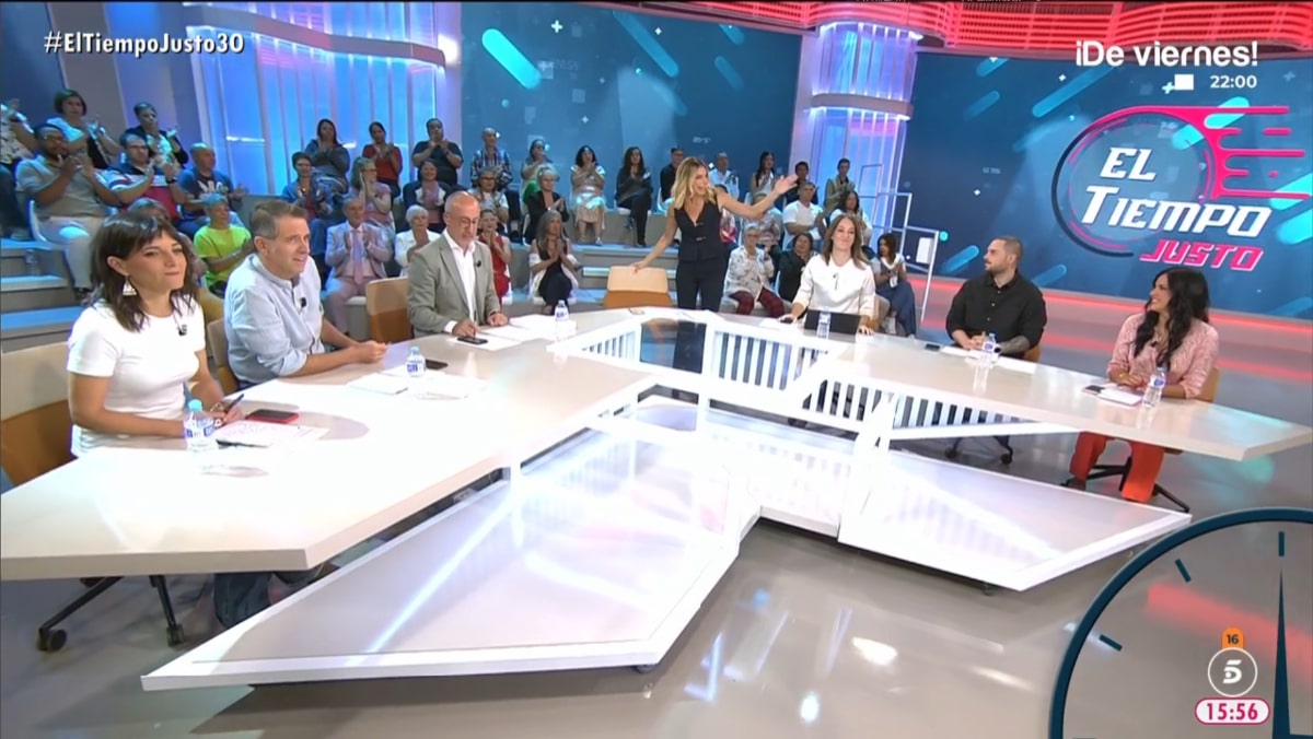 Mientras, en su ausencia, han sido María Ruiz y César Muñoz los encargados de presentar por primera vez 'El tiempo justo' como presentadores titulares. Ella de la parte de política y actualidad en el primer bloque del programa y él al frente de la sección de corazón y realitys en la segunda parte del espacio producido por Unicorn Content.