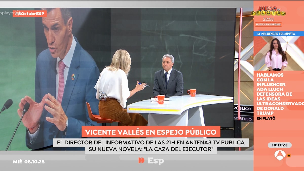 Vicente Vallés continúa su periplo por los diferentes programas de Antena 3 para promocionar su nueva novela. Tras visitar 'Y ahora Sonsoles' y 'El Hormiguero', el presentador ha acudido este miércoles, 8 de octubre a Susanna Griso en 'Espejo Público'.