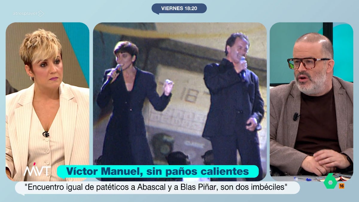 Pero además, Cristina Pardo dejaba claro lo que le parece tan honesto por su parte. "Hay mucha gente que no hace ese ejercicio de analizar oye me ha gustado lo que han hecho o no me ha gustado. Y a mí en ese sentido, Víctor Manuel me parece un tío muy honesto", añadía. "Es muy duro, porque como estamos en un momento de equipos de fútbol y de yo soy de este equipo a mil no hay contexto, y yo creo que Víctor de su generación es el cantautor más crítico consigo mismo y más abierto de toda su generación. Para mí es un monumento", valoraba Edu Galán.