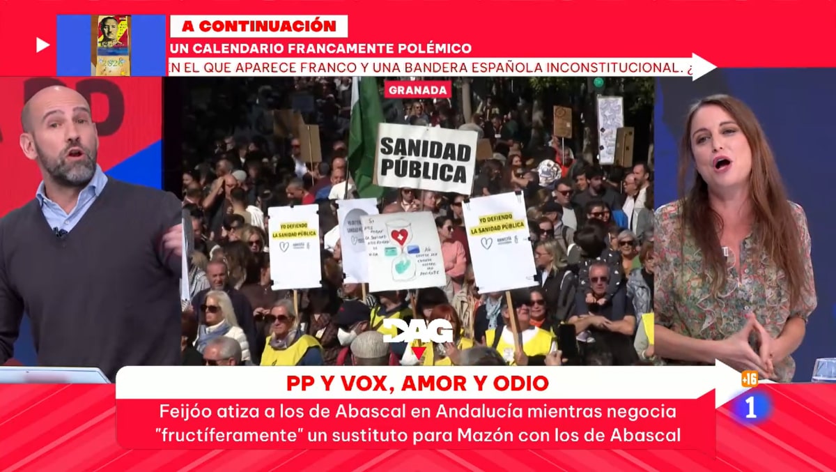 Después, Gonzalo Miró no dudaba en tomar la palabra para desmontar en pleno directo los datos que había dado Andrea Levy para tratar de defender al PP. "Entiendo que habrá que hacer una comprobación mayor ,pero yo aquí según he escuchado a Andrea me he puesto a trastear rápidamente en este minuto y medio y pone que el presupuesto para la sanidad privada en Andalucía ha aumentado entre 2018 y 2024 un 38% según datos del IDIS y hay varias noticias", le soltaba el copresentador.