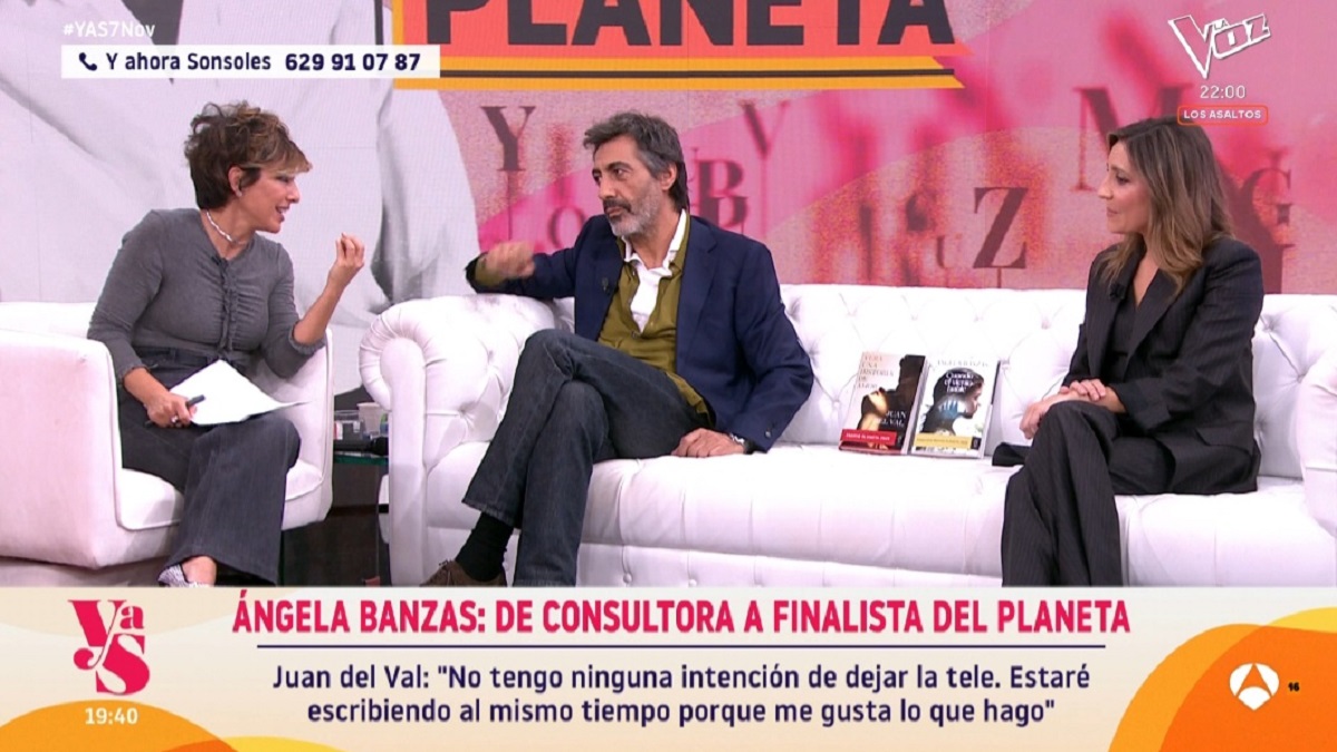 Este viernes, 7 de noviembre, Sonsoles Ónega ha recibido en el plató de 'Y ahora Sonsoles' a Juan del Val y Ángela Banzas, ganador y finalista del Premio Planeta 2025, respectivamente. Mientras que a él es habitual verle en la pequeña pantalla, ella es una gran desconocida para el público, por lo que la presentadora ha querido conocerla un poco más a fondo.