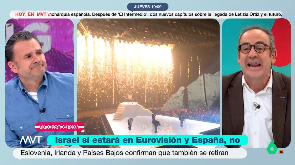 "Y a pesar de ello parece que Israel será bienvenido un año más en el festival de Eurovisión. España no va a estar, pero parece que otros países también se van a ausentar ante la presencia de un país representado por un gobierno genocida", añadía Iñaki López antes de conectar con redacción para conocer qué otros países se retiran de Eurovisión.