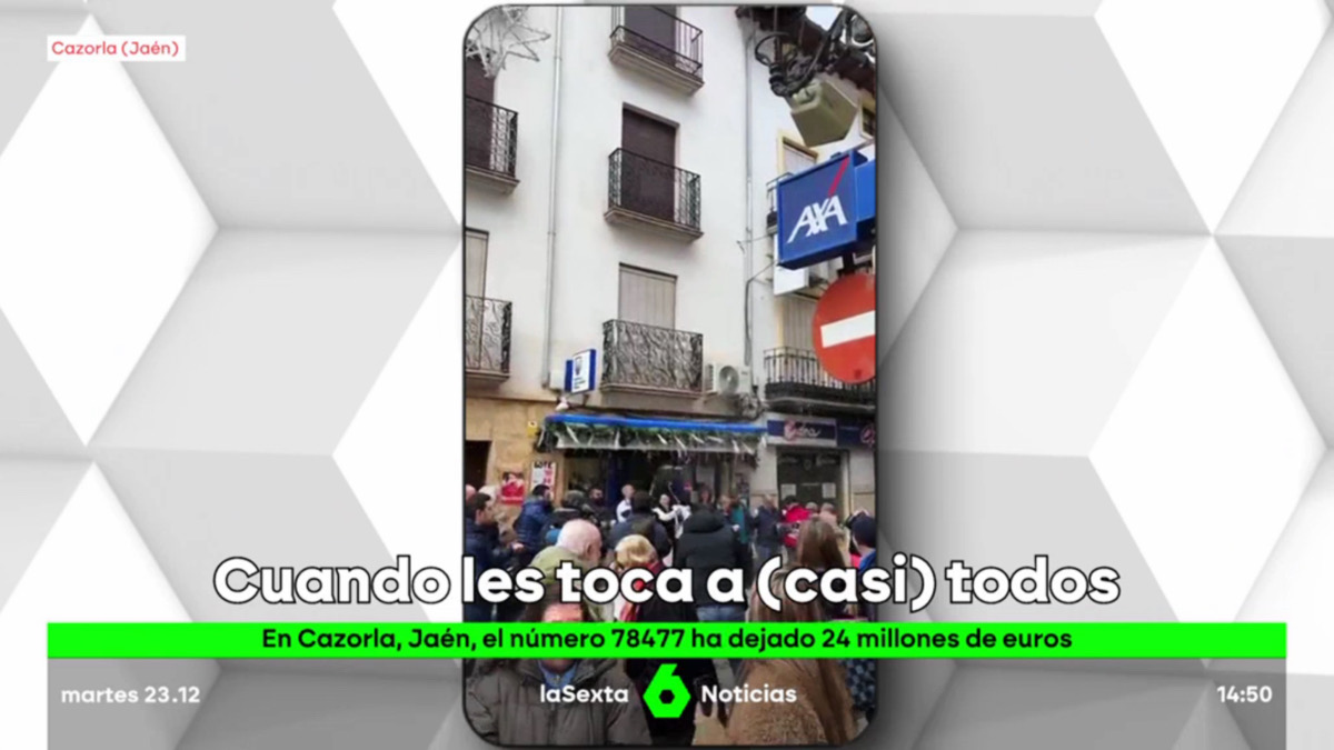 Se trata de Cazorla, en la provincia de Jaén, donde el sorteo ha dejado unos 24 millones de euros entre muchos de sus vecinos. El reportaje, bajo el título 'Cuando les toca a (casi) todos', constaba de varios totales que un equipo de La Sexta había recabado en la localidad; con testimonios de quienes se habían hecho 'millonarios' y quienes, en cambio, no habían adquirido ese décimo.