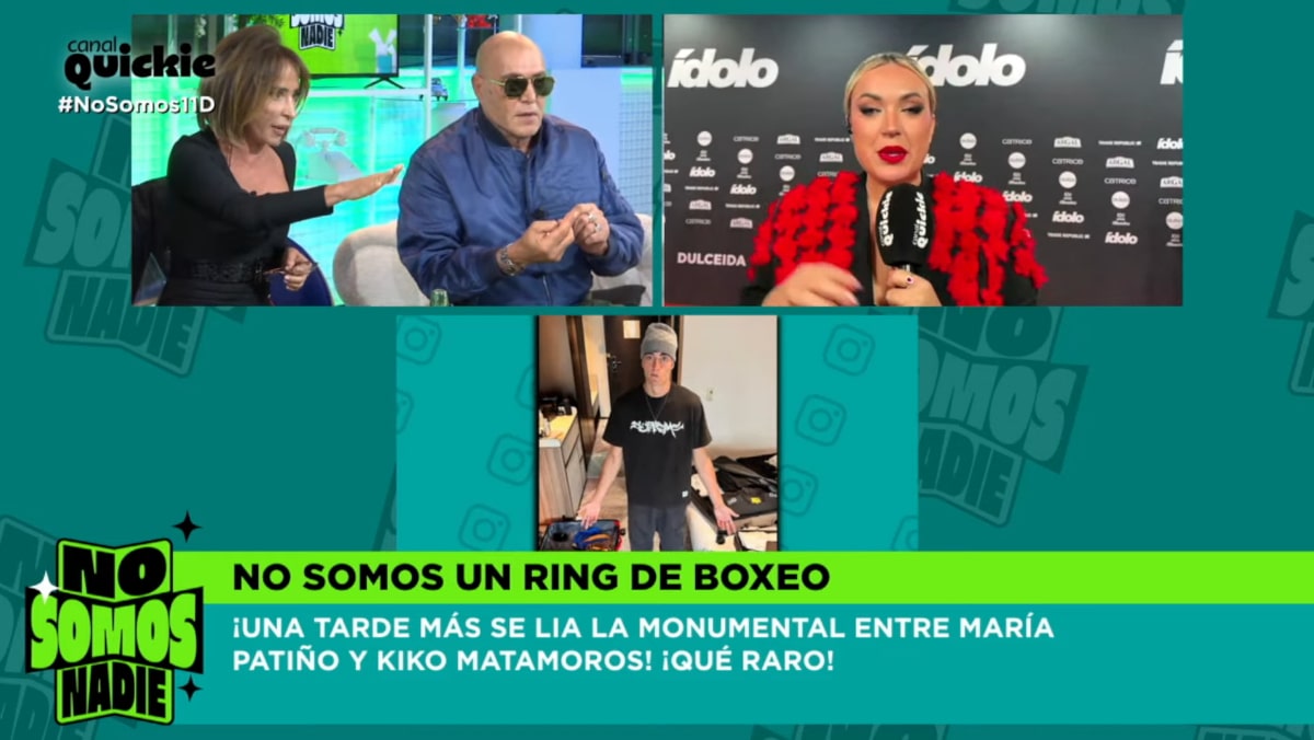 Este jueves se ha vivido un momento de muchísima tensión en el plató de 'No somos nadie' con María Patiño y Kiko Matamoros enfrentándose mientras Marta Riesco se encontraba en directo con Javi de Hoyos desde la alfombra de los Premios Ídolo.