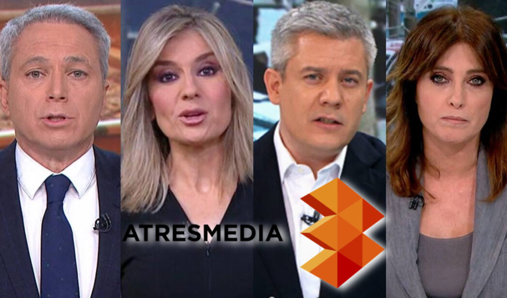 Vicente Vallés, Sandra Golpe, Rodrigo Blázquez, Helena Resano y el logo de Atresmedia | Montaje El Televisero