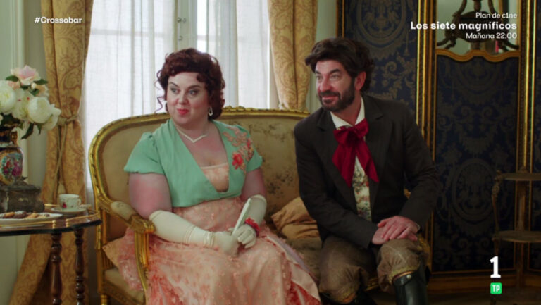 Cabe señalar que por ahora se trata de una única entrega producida por El Terrat ('Futuro imperfecto'). 'Crossobar' plantea un universo propio: un bar elegante y contemporáneo con barra, butacas y sofás de terciopelo, donde los personajes más reconocidos de títulos como, entre otros, 'Valle Salvaje', 'La Promesa', 'El Ministerio del Tiempo', 'La Revuelta', 'Futuro Imperfecto', 'Late Xou', 'The Last of Us', 'Pretty Woman', 'Los Bridgerton' o 'Poquita Fe' se reúnen antes de entrar en sus series, programas o películas.