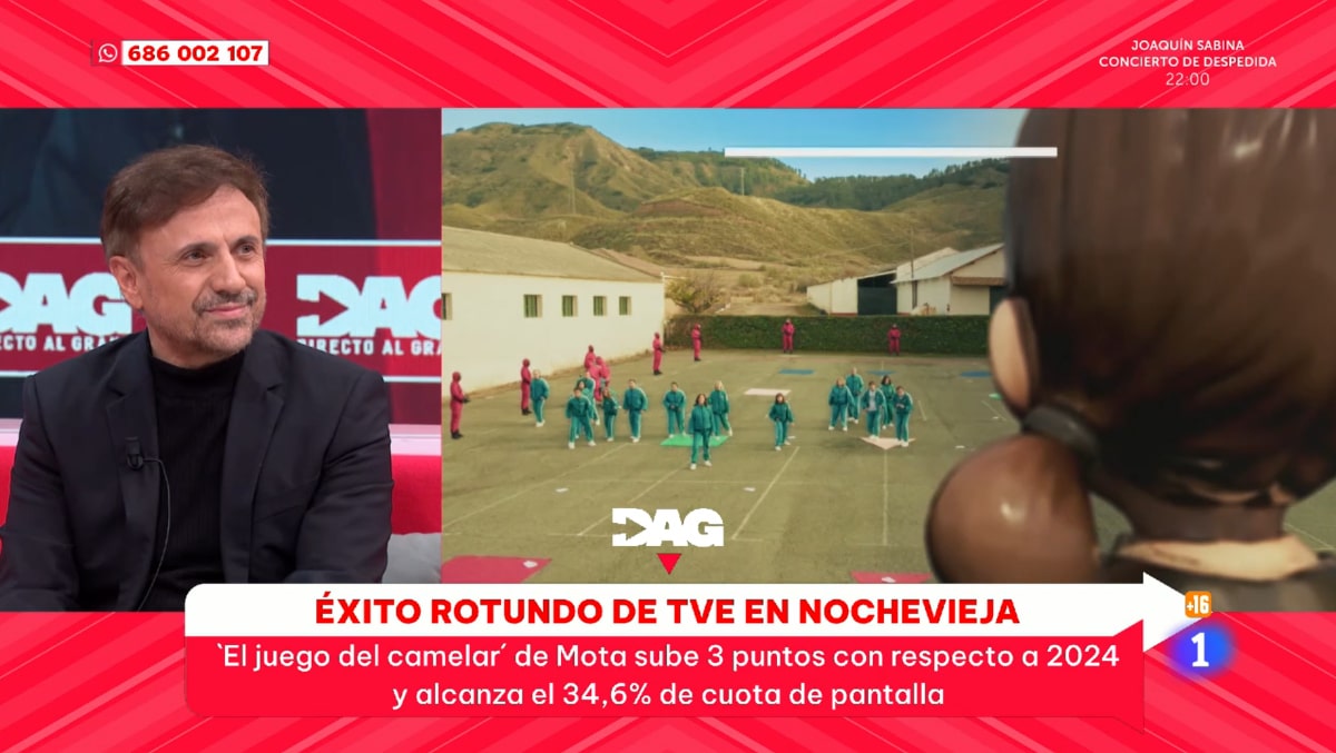El especial número 25 de José Mota en la Nochevieja de La 1, 'El juego del camelar' volvió a liderar y alcanzó un 34,6%, todo un récord desde 2018, con más de 3,5 millones de espectadores y más de seis millones de contactos.