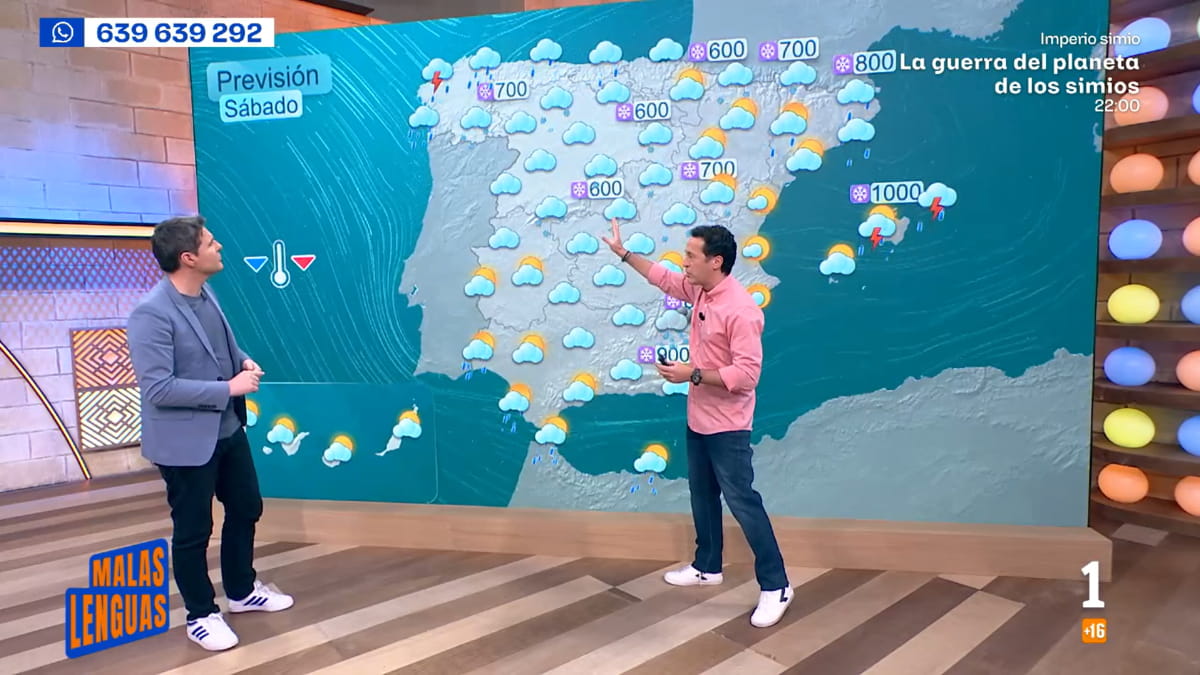 El presentador de 'Aquí la tierra' visitaba este viernes el plató de 'Malas Lenguas' para hacer un pronóstico del tiempo junto a Jesús Cintora y alertar de qué zonas serán las más afectadas por este temporal de viento, frío, nieve y lluvia.
