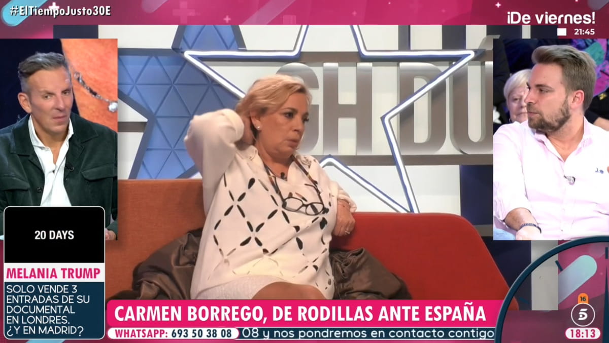 Después, era Marta López la que defendía que para que Carmen Borrego haya dejado de ganar dinero con su participación en 'GH DÚO' lo tenía que haber pasado muy mal en la casa. Una frase que llevaba a a Joaquín Prat a dar la clave de por qué a Carmen Borrego le importa poco abandonar los realitys. "Mira es aburguesamiento, ahí tienes a un montón de gente que va ahí a ganar dinero porque no saben cuando van a tener otra oportunidad y Carmen Borrego sabe que sale y tiene 'El tiempo justo', 'Vamos a ver' y no tiene la misma necesidad de partirse el cobre en un reality", sentenciaba el presentador.