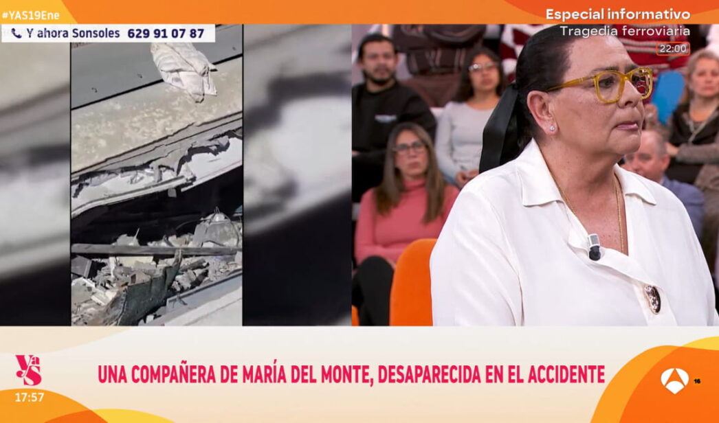 María del Monte ha aparecido este lunes en 'Y ahora Sonsoles' con la cara desencajada y con actitud alicaída por el trágico accidente de tren en Adamuz (Córdoba). Y es que la cantante conoce a una de las víctimas mortales de la tragedia y por si fuera poco se libró de estar en uno de los trenes de milagro.