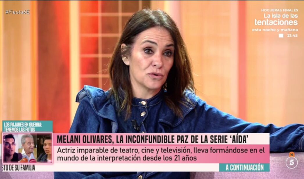Melani Olivares visitó 'Fiesta' en su emisión especial del Día de Reyes y lo hizo para hablar de sus próximos proyectos, entre los que se encuentra 'Aída y vuelta', la película sobre la popular serie de Telecinco que llegará a los cines el próximo 30 de enero y en la que la actriz se vuelve a meter en la piel de Paz Bermejo, el personaje que tanto éxito le supuso.