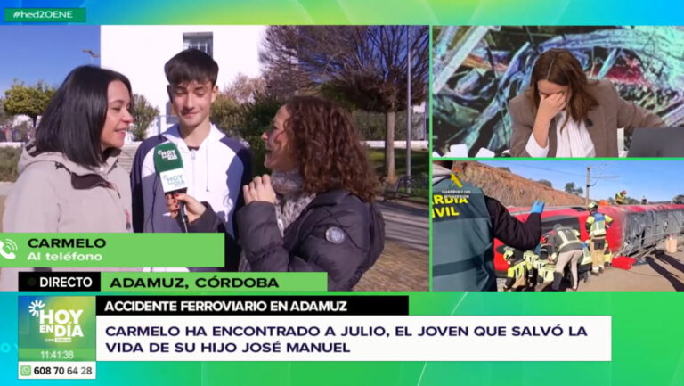 'Hoy en día' se desplazaba este martes hasta Adamuz, Córdoba, para conocer al "héroe más joven" del trágico accidente ferroviario del pasado domingo. Así, Toñi Moreno comenzaba entrevistando a Julio, un joven de 16 años que fue de los primeros en acudir a la escena del siniestro junto a su madre para ayudar a los afectados. Pero más tarde, el espacio de Canal Sur firmaría una de las escenas más emotivas del día.