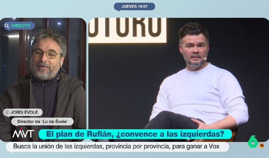 Jordi Évole reconoció ser "una persona de izquierdas". Por eso, le "parece que el panorama, la perspectiva de futuro que tenemos es horrorosa. Me parece que un gobierno del PP con Vox le haría mucho daño a este país". Aunque considera que, quizá, la idea de Rufián "es una propuesta a la desesperada, veo muy difícil que esto cuaje, pero me gusta ver que hay gente que está proponiendo cosas".