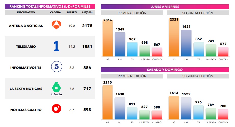 INFORMATIVOS: 'Antena 3 Noticias', líder absoluto