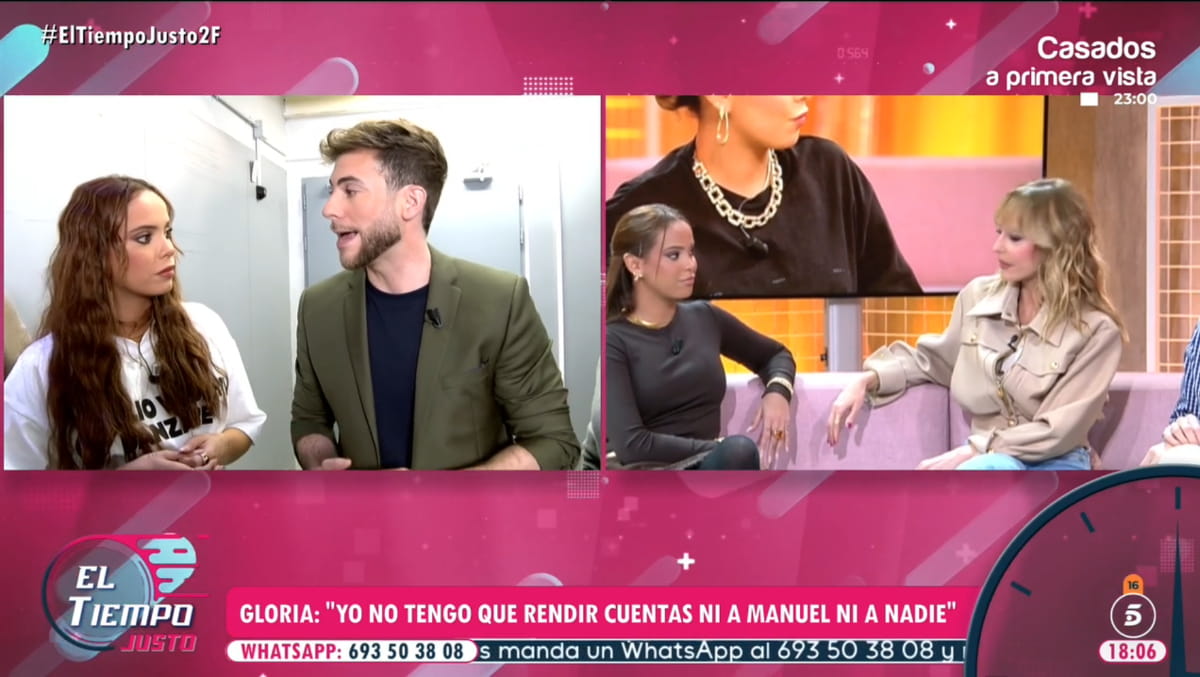 Tras escucharla, César Muñoz insistía en saber por qué estaba tan cabreada en 'Fiesta' y tuvo esa actitud con Emma García. "¿Y con Emma ningún problema?", trataba de saber el copresentador de 'El tiempo justo'. "Yo con Emma no tengo ningún problema pero creo que estuvo muy fuera de lugar la reacción porque cuando viene Emma y me pregunta yo a lo que hago referencia es mi enfado con el programa por hacer el cara a cara con Raquel, cosa que tampoco creo que tenga que hacerlo", aseveraba Gloria.