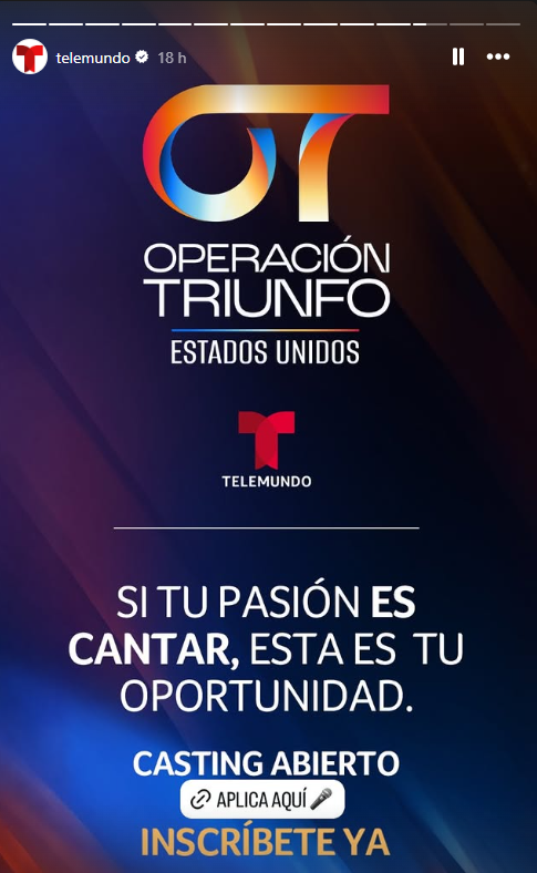 "¿Alguna vez soñaste con vivir de tu música? ¡Esta es tu oportunidad! Operación Triunfo llega a Estados Unidos en busca de la próxima gran estrella de la música latina", anuncia la cadena que ya ha abierto el casting para seleccionar a los participantes que entrarán a la academia del programa.