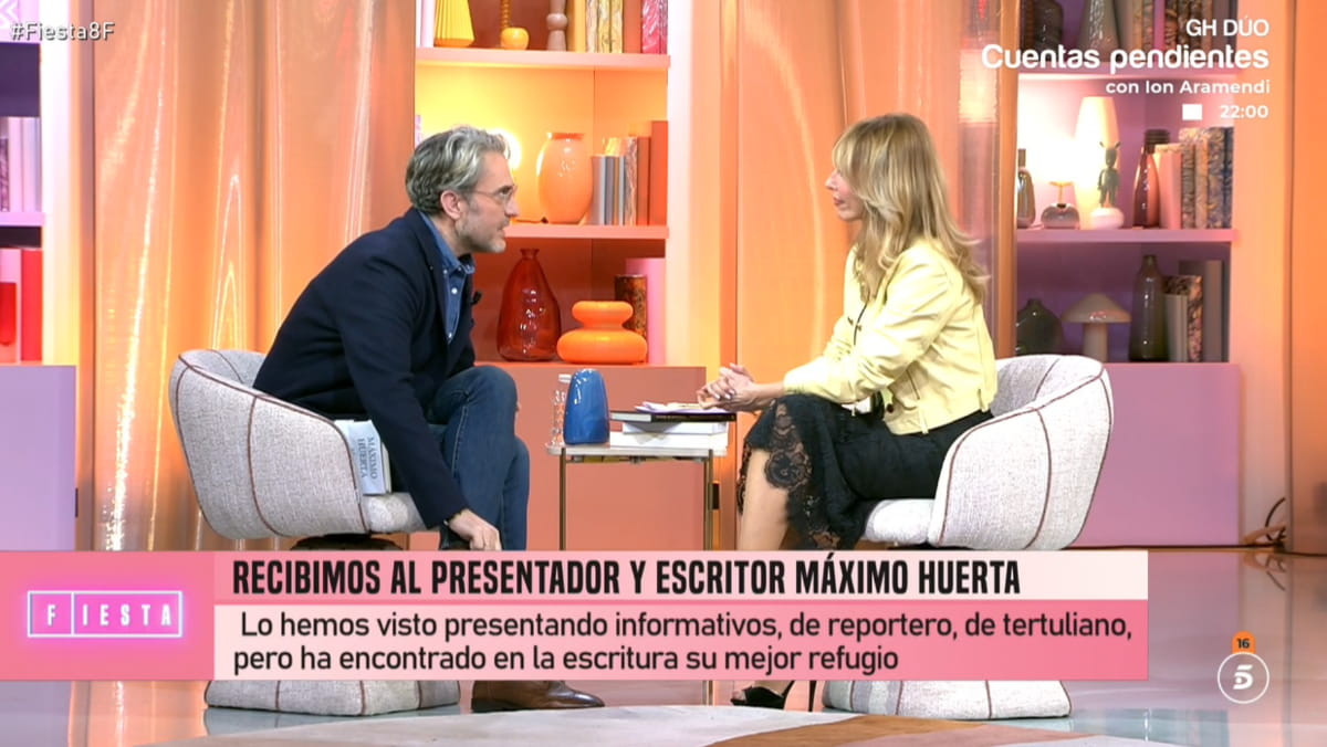 Un día después, Máximo Huerta visitaba 'Fiesta' para hablar con Emma García de su nueva novela, 'Mamá está dormida' y nada más arrancar la entrevista, el escritor y presentador le decía a su compañera lo que pensaba de ella y se su conflicto con Gloria Camila.