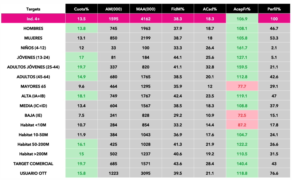 Por último, en lo que respecta a los mercados, 'La Revuelta' fue todo un éxito en Madrid donde anotó su mejor resultado con un 18,8% seguido de Galicia (15,9%), Aragón (15,5%), Murcia (15,4%), Comunidad Valenciana (15,3%), Castilla y León (15,3%), Castilla La Mancha (14,9%) y Euskadi (13,8%).