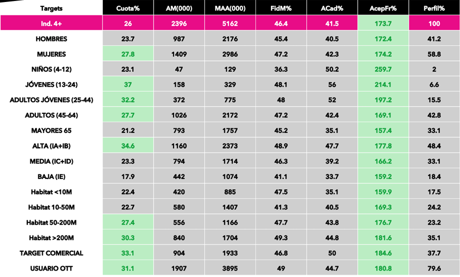 - 2025: 2.340.000 y 24,4% (Maribel Verdú y Leonor Watling)