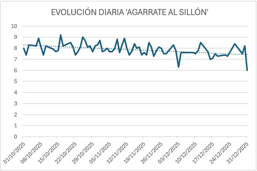 Evolución diaria de audiencias de 'Agárrate al sillón' | Datos: Dos30'