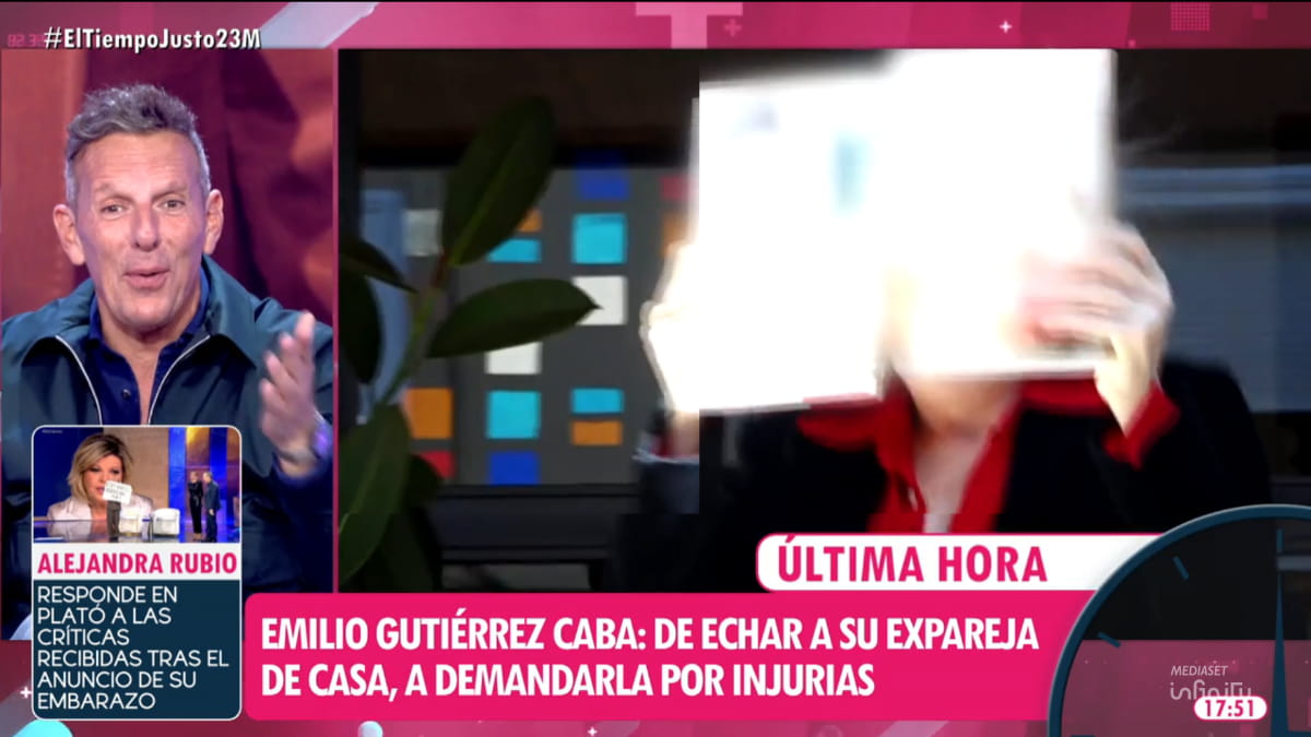 Y este lunes se ha vivido un momento muy curioso en pleno 'El tiempo justo'. El formato emitía un vídeo en el que uno de sus reporteros trataba de hablar con Mónica, la ex del actor Emilio Gutiérrez Caba. Y para evitar que le grabaran y le pudieran preguntar, la mujer se tapaba con la nueva novela de Sonsoles Ónega.