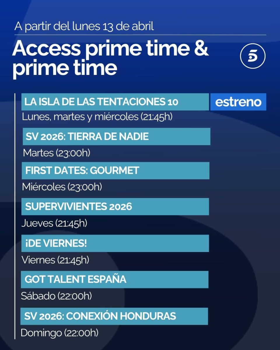La explicación a este giro sustancial en la programación reside en la llegada a Telecinco de la décima temporada de 'La Isla de las Tentaciones', que, como ya contamos, repetirá el mismo plan de emisión de la novena edición con capítulos en el access y prime time de los lunes y en el access del martes y miércoles a partir de las 21:45 horas.