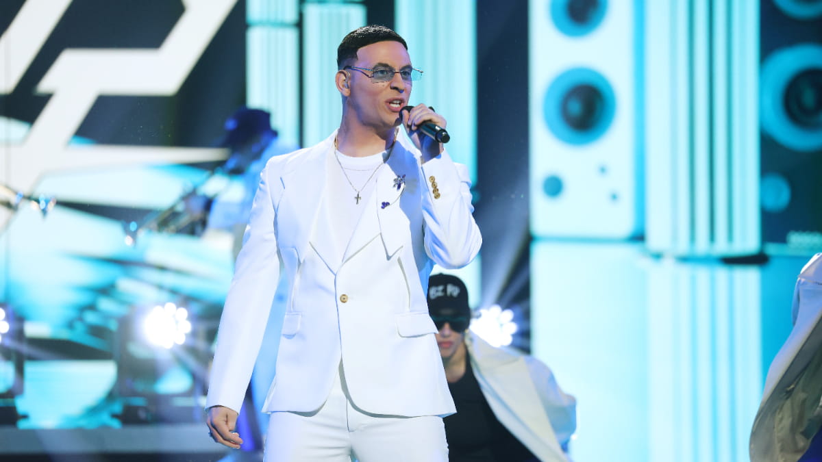 El ganador de 'Tu cara me suena 9' fue el segundo en tomar el escenario para transformar el renovado plató en el espectáculo de la Super Bowl de Bad Bunny. Enfundando en el icónico esmoquin blanco del cantante, el canario terminaba su actuación bebiendo un chupito para dejar paso a la "superestrella" de la primera edición del talent, Angy. Así, la que se hizo con la victoria en 2011 cerraba el medley convertida en Aitana.