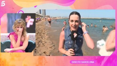 Emma García se vio obligada a cortar, entre risas, una conexión en directo con una playa de Barcelona al colarse una mujer en topless