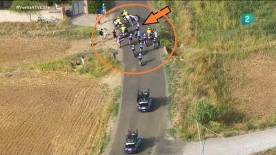 Un grupo de manifestantes cortaba el paso del equipo Israel Premier Tech en La Vuelta tal y como se captó en La 2 con la defensa de Carlos de Andrés y las críticas de Perico Delgado.