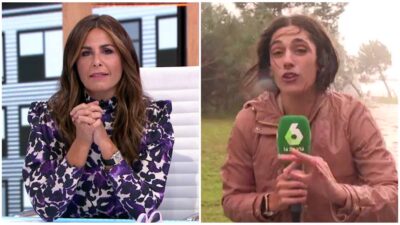 Carla Álvarez, reportera del programa de laSexta, sufre en primera persona la borrasca Bernard, que se lleva su paraguas en directo